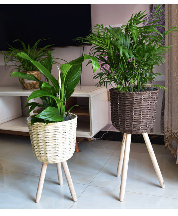 Rattan Woven Wood Simple Woven Flower Floor Basket Set Living Room
